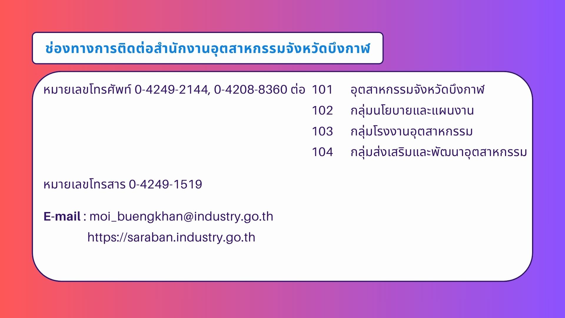 ติดต่อสำนักงานอุตสาหกรรมจังหวัดบึงกาฬ