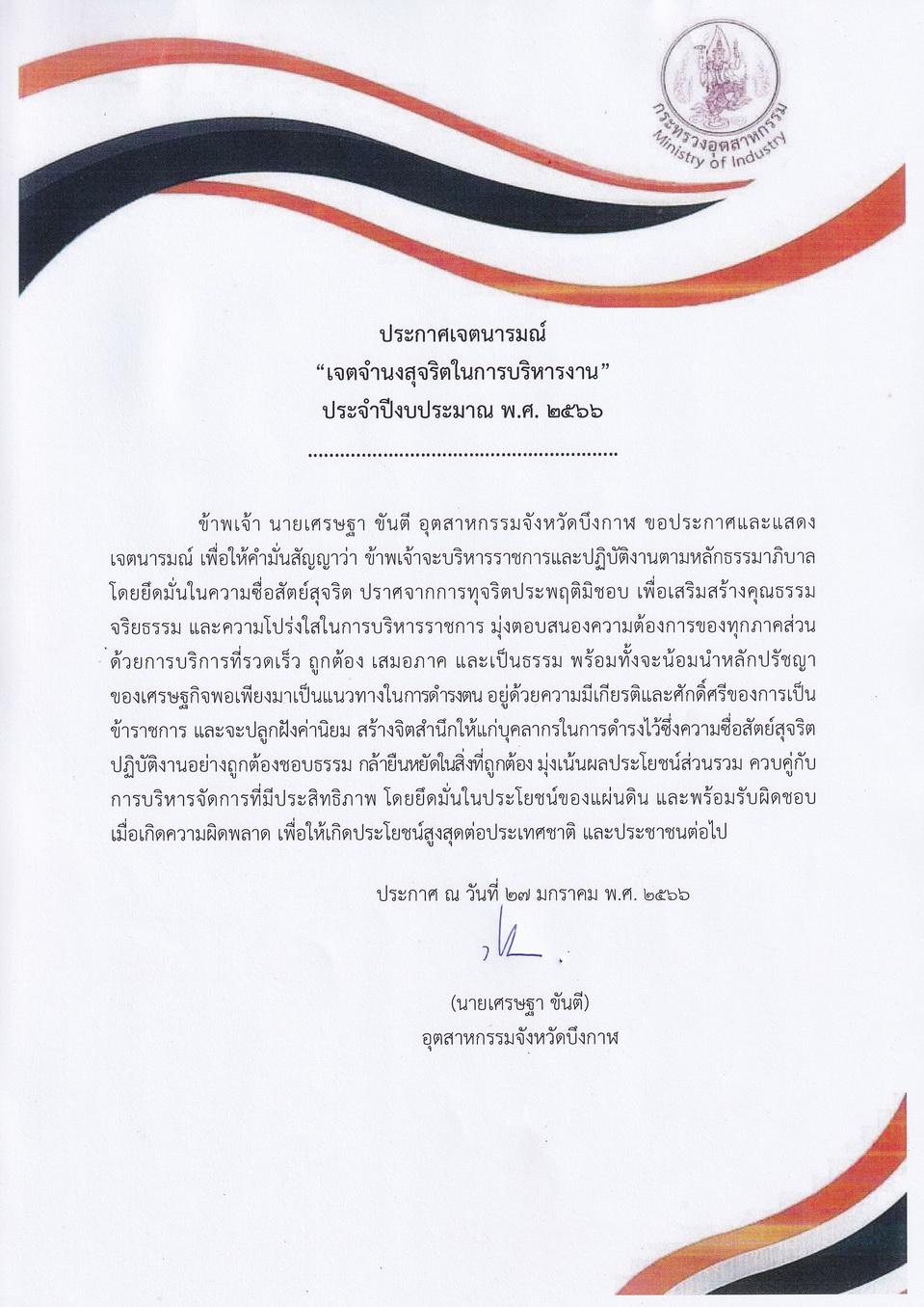 | ประกาศเจตนารมณ์เจตจำนงสุจริตในการบริหารงาน ประจำปีงบประมาณ พ.ศ. 2566_Thai.pdf |