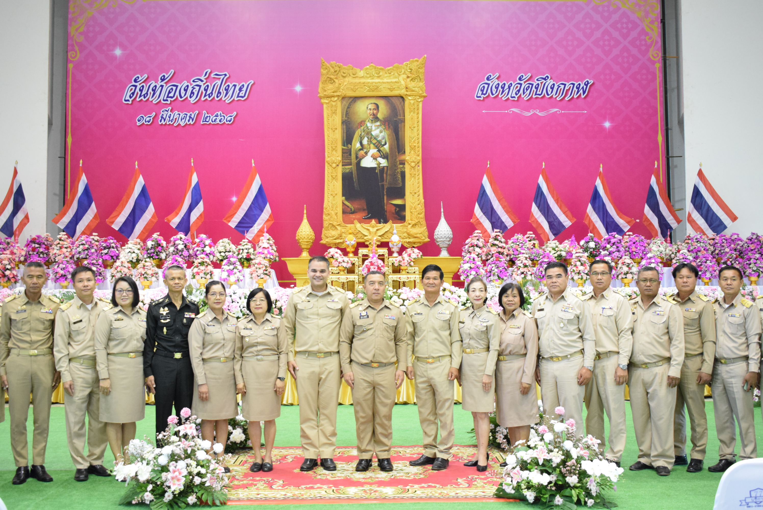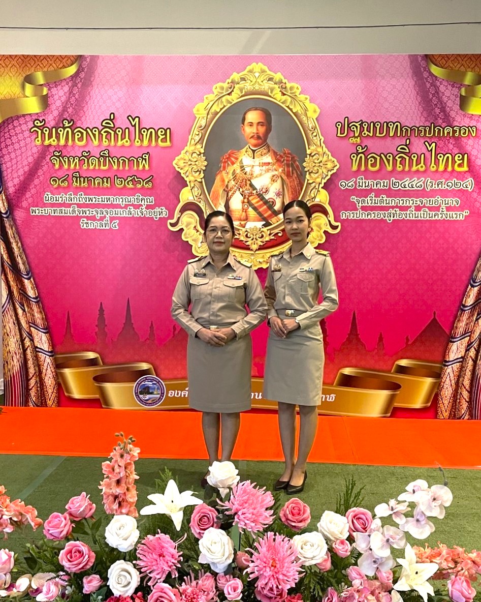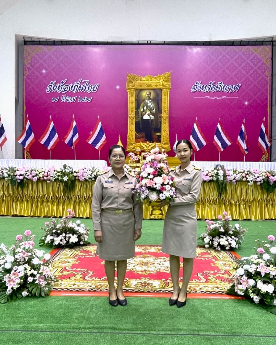 นางสมใจ ยาวะโนภาส อุตสาหกรรมจังหวัดบึงกาฬ พร้อมด้วยนางสาวนริศรา ไตรวงษ์ เจ้าพนักงานการเงินและบัญชีชำนาญงาน ร่วมพิธีวางพานพุ่มดอกไม้สด เนื่องในวันท้องถิ่นไทย ประจำปี พ.ศ. 2568 ณ ห้องประชุมจังหวัดบึงกาฬ ศูนย์ราชการจังหวัดบึงกาฬ โดยมีนายจุมพฏ วรรณฉัตรสิริ ผู้ว่าราชการจังหวัดบึงกาฬ เป็นประธานในพิธีฯ