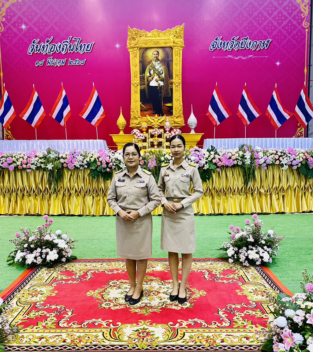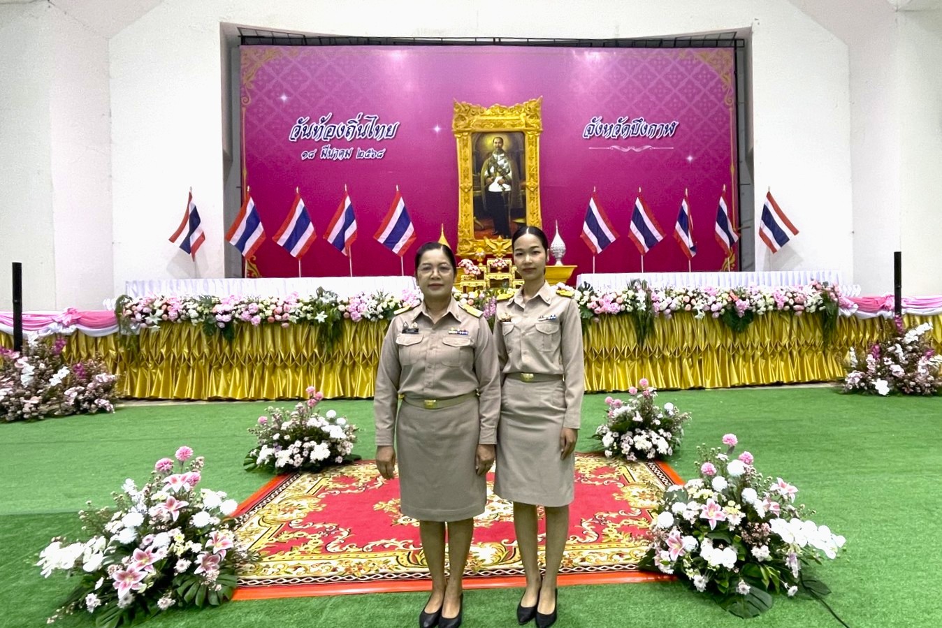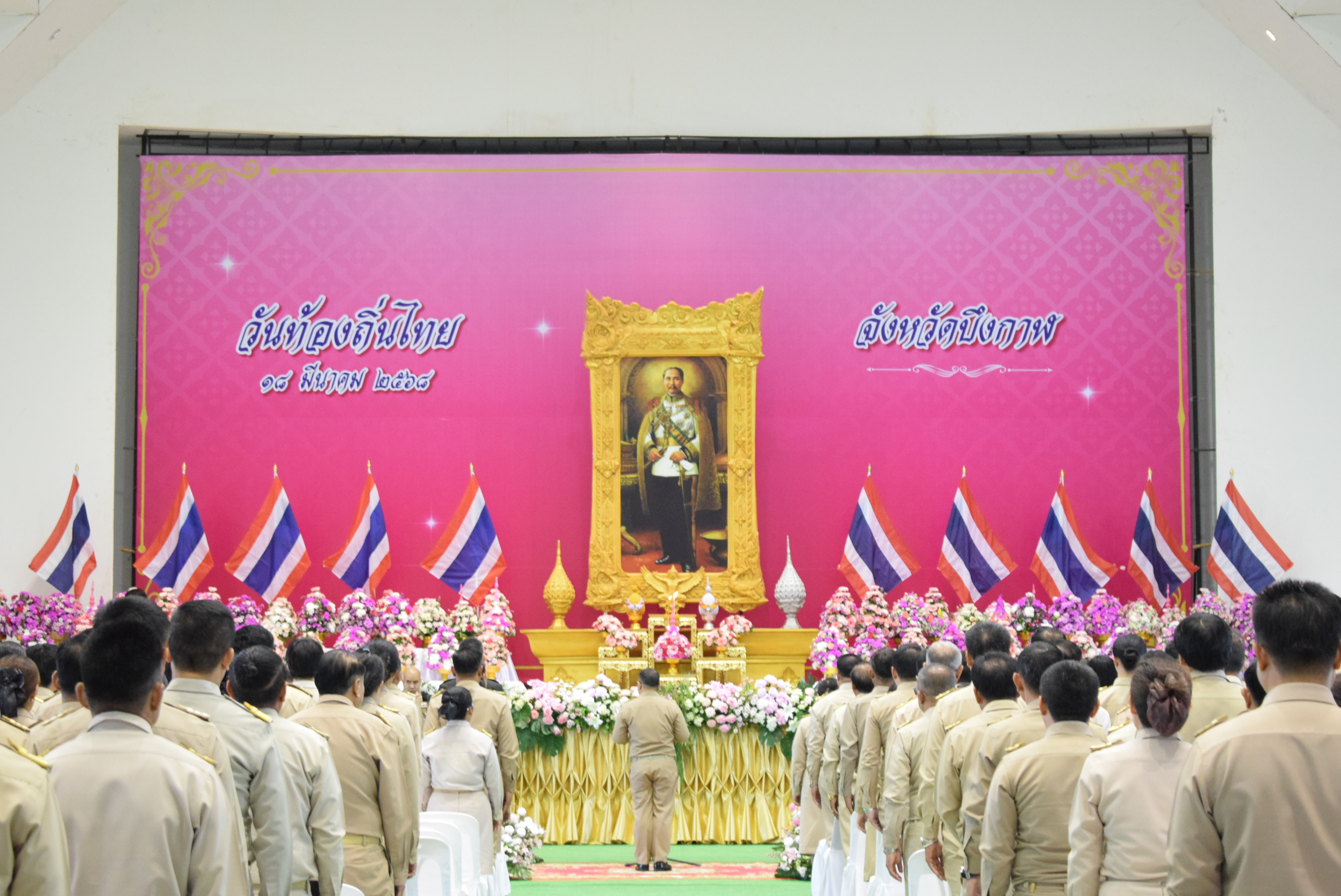 นางสมใจ ยาวะโนภาส อุตสาหกรรมจังหวัดบึงกาฬ พร้อมด้วยนางสาวนริศรา ไตรวงษ์ เจ้าพนักงานการเงินและบัญชีชำนาญงาน ร่วมพิธีวางพานพุ่มดอกไม้สด เนื่องในวันท้องถิ่นไทย ประจำปี พ.ศ. 2568 ณ ห้องประชุมจังหวัดบึงกาฬ ศูนย์ราชการจังหวัดบึงกาฬ โดยมีนายจุมพฏ วรรณฉัตรสิริ ผู้ว่าราชการจังหวัดบึงกาฬ เป็นประธานในพิธีฯ