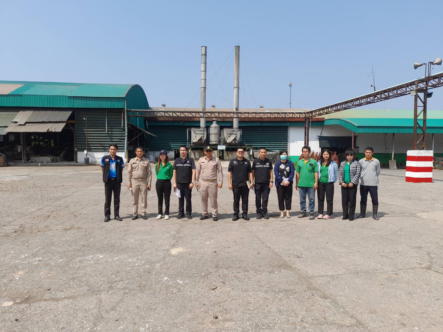 นางสาวสุภาภรณ์ วิไลเรืองสุวรรณ อุตสาหกรรมจังหวัดบึงกาฬ มอบหมายให้นายปรัชญา รัฐเมือง หัวหน้ากลุ่มโรงงานอุตสาหกรรม ลงพื้นที่ร่วมกับผู้แทนจาก กอ.รมน.จังหวัดบึงกาฬ ศูนย์ดำรงธรรมจังหวัดบึงกาฬ สำนักงานทรัพยากรธรรมชาติและสิ่งแวดล้อมจังหวัดบึงกาฬ สำนักงานสาธารณสุขจังหวัดบึงกาฬ และเทศบาลตำบลโนนสมบูรณ์ เพื่อตรวจติดตามการปรับปรุงแก้ไขโรงงาน บริษัท ไทยฮั้วยางพารา จำกัด (มหาชน) สาขาบึงกาฬ ประกอบกิจการ ผลิตยางเครป, ยางแท่ง เอสทีอาร์ 20 ตั้งอยู่ ณ เลขที่ 195 หมู่ 5 ตำบลโนนสมบูรณ์ อำเภอเมืองบึงกาฬ จังหวัดบึงกาฬ จากการตรวจสอบพบว่าได้มีการนำวัตถุดิบ (ยางก้อนถ้วย) ที่อยู่ภายนอกอาคารไปจัดเก็บไว้ในอาคาร และจัดเก็บให้มีสภาพถูกสุขลักษณะ ทำความสะอาดพื้น ที่เคยมีการกองวัตถุดิบ เพื่อป้องกลิ่นเหม็นที่อาจจะออกสู่บริเวณภายนอกพื้นที่บ่อดักทรายและสิ่งสกปรกก่อนเข้าสู่ระบบบำบัดน้ำเสียได้มีการทำความสะอาด และจัดหาวัสดุมาปกคลุมบ่อเก็บน้ำจากกองยางก่อนเข้าสู่ระบบบำบัดน้ำเสีย ตามคำสั่งปรับปรุงแก้ไขโรงงานเรียบร้อยแล้ว และคณะผู้ตรวจพบว่า กลิ่นที่เกิดขณะตรวจสอบอยู่ในเกณฑ์ที่ยอมรับได้ มีการเปลี่ยนแปลงไปในทิศทางที่ดีขึ้นเมื่อเทียบกับก่อนการปรับปรุง ทั้งนี้พนักงานเจ้าหน้าที่ตามพระราชบัญญัติโรงงาน พ.ศ. 2535 และฉบับแก้ไข จะได้ดำเนินการตามอำนาจหน้าที่ต่อไป