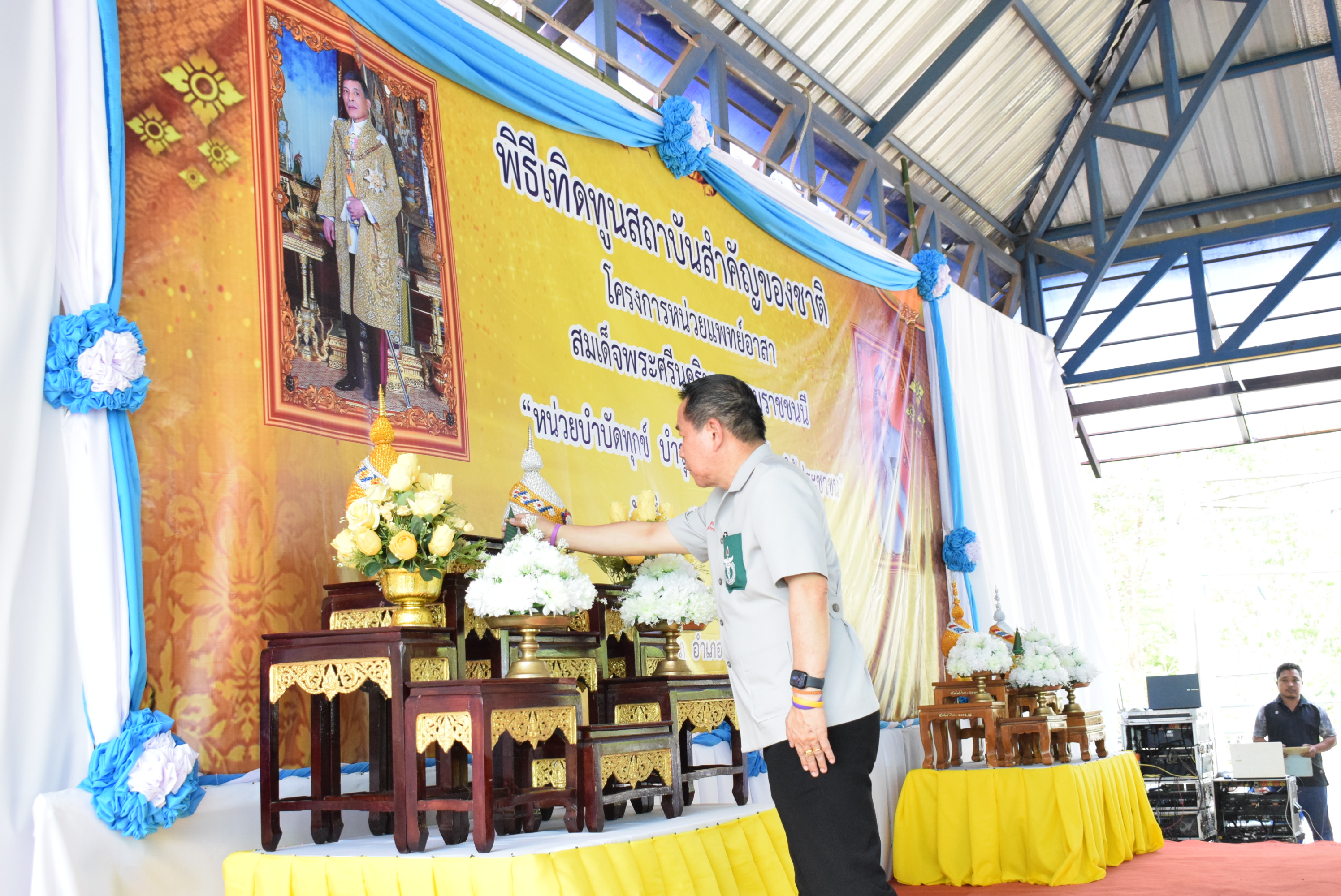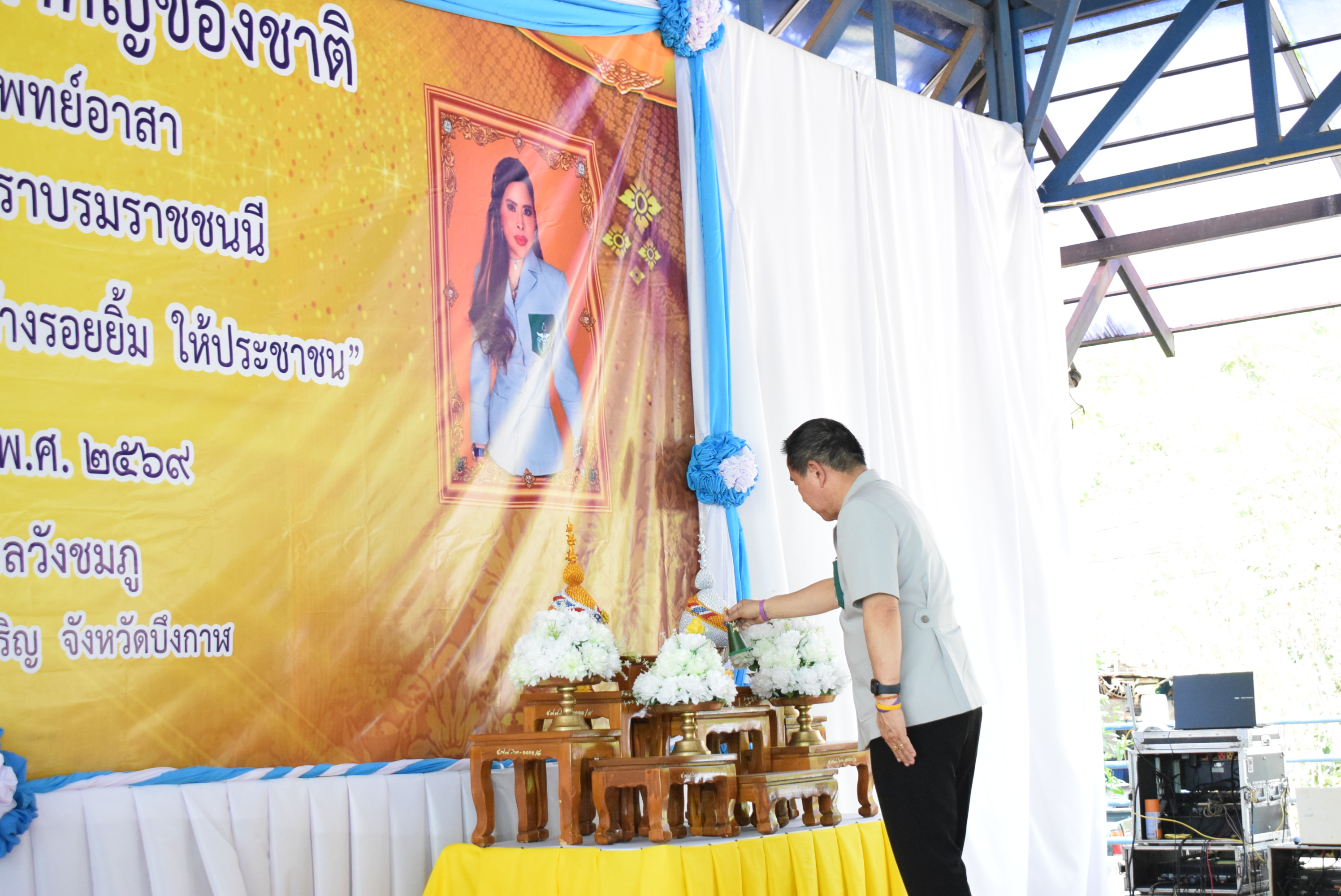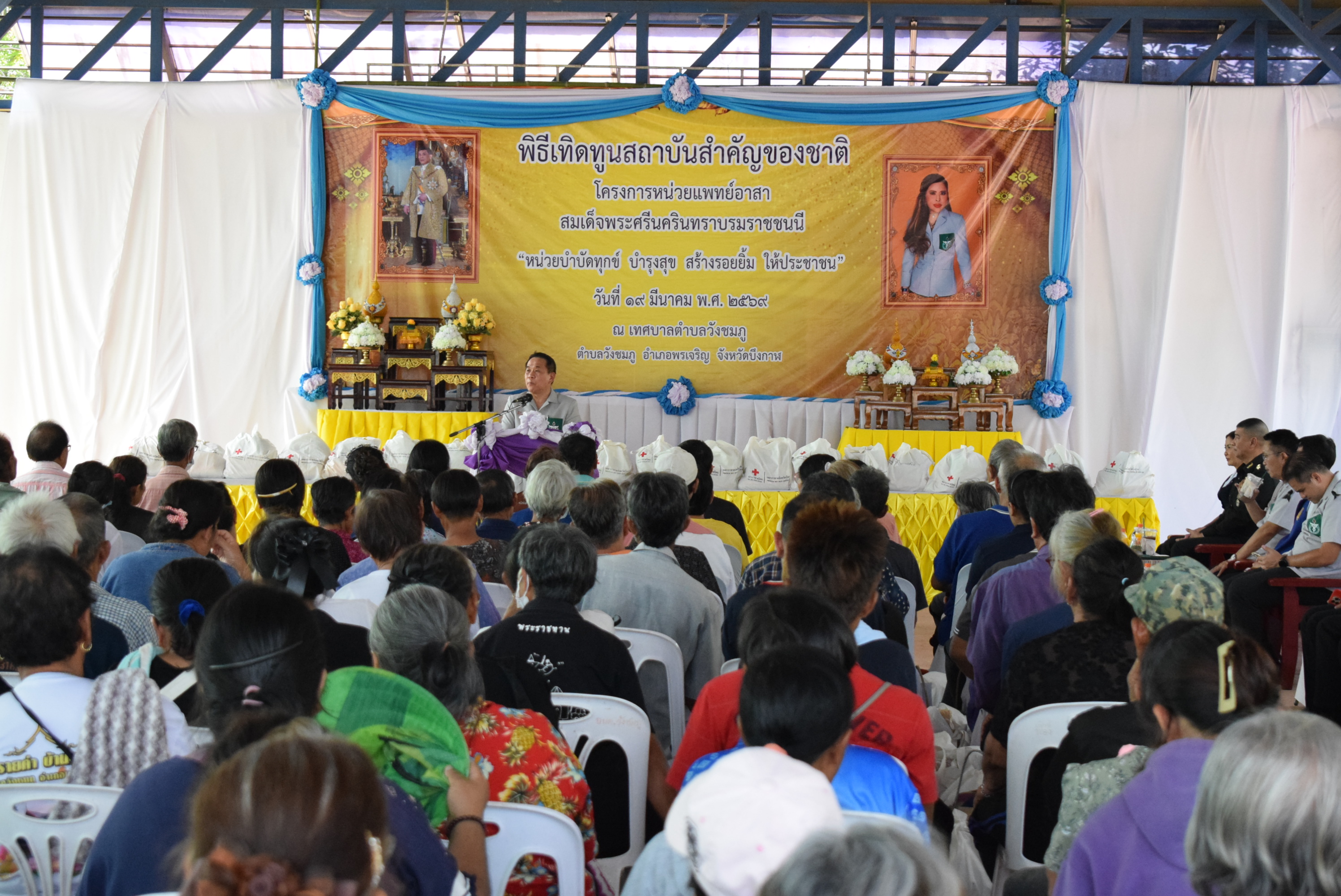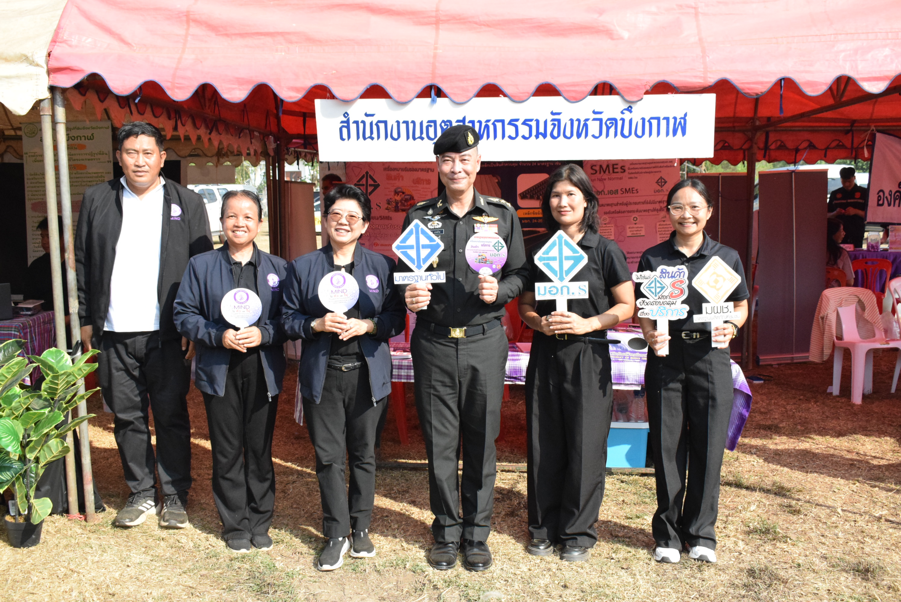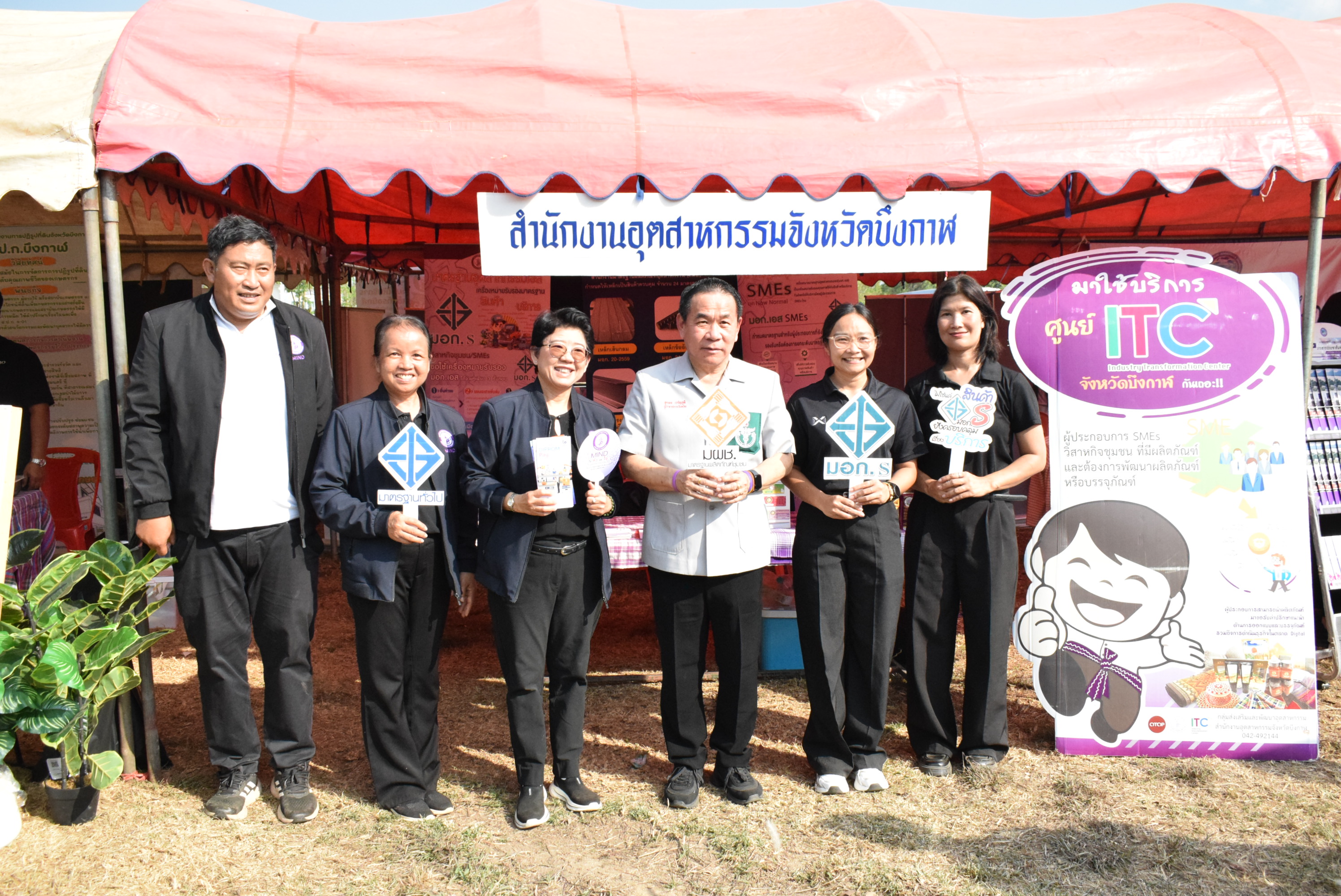 นางสาวสุภาภรณ์ วิไลเรืองสุวรรณ อุตสาหกรรมจังหวัดบึงกาฬ พร้อมด้วยนางสาวจีระวรรณ แสงจันทร์ หัวหน้ากลุ่มส่งเสริมและพัฒนาอุตสาหกรรม และเจ้าหน้าที่สำนักงานอุตสาหกรรมจังหวัดบึงกาฬ เข้าร่วมโครงการ “ปกป้องเชิดชูสถาบันพระมหากษัตริย์ และหน่วยบำบัดทุกข์ บำรุงสุข สร้างรอยยิ้มให้ประชาชน” ประจำปีงบประมาณ พ.ศ. 2569 เพื่อให้บริการประชาชน ประชาสัมพันธ์งานให้บริการการออกแบบผลิตภัณฑ์ การขอรับรองมาตรฐาน แจกแผ่นพับมอก. และมอก.เอส ณ เทศบาลตำบลวังชมภู หมู่ที่ 1 ตำบลวังชมภู อำเภอพรเจริญ จังหวัดบึงกาฬ โดยมีนายสุรพล เจริญภูมิ ผู้ว่าราชการจังหวัดบึงกาฬ เป็นประธานเปิดโครงการฯ
