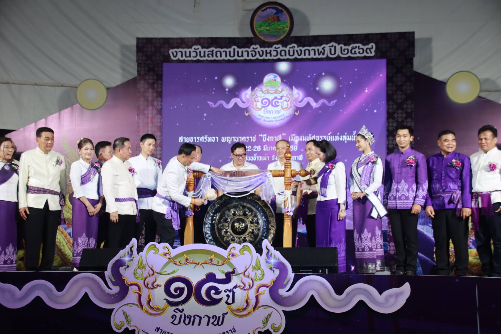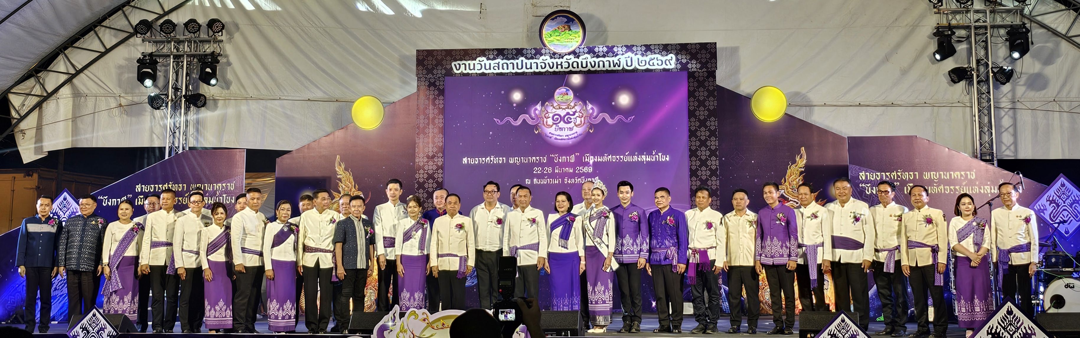 นางสาวสุภาภรณ์ วิไลเรืองสุวรรณ อุตสาหกรรมจังหวัดบึงกาฬ พร้อมด้วยข้าราชการและเจ้าหน้าที่สำนักงานอุตสาหกรรมจังหวัดบึงกาฬ เข้าร่วมพิธีเปิดงานวันสถาปนาจังหวัดบึงกาฬ ประจำปี 2569 เพื่อเฉลิมฉลองการครบรอบ 15 ปีแห่งการสถาปนาจังหวัดบึงกาฬ ณ ถนนข้าวเม่าริมโขง อำเภอเมืองบึงกาฬ จังหวัดบึงกาฬ โดยมี ดร.ทรงศักดิ์ ทองศรี รัฐมนตรีช่วยว่าการกระทรวงมหาดไทย เป็นประธานในพิธีฯ