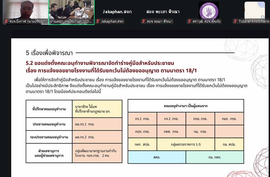 นางสาวสุภาภรณ์ วิไลเรืองสุวรรณ อุตสาหกรรมจังหวัดบึงกาฬ มอบหมายให้นายปรัชญา รัฐเมือง หัวหน้ากลุ่มโรงงานอุตสาหกรรม เข้าร่วมประชุมคณะทำงานดำเนินการยกระดับการบริการภาครัฐฯ ครั้งที่ 26-2/2569 เพื่อพิจารณาปรับปรุงคู่มือสำหรับประชาชนที่เกี่ยวข้องกับใบอนุญาตประกอบกิจการโรงงาน ผ่านสื่ออิเล็กทรอนิกส์ Zoom Meeting ณ สำนักงานอุตสาหกรรมจังหวัดบึงกาฬ โดยมีนางสาวอารยา ไสลเพชร รองอธิบดีกรมโรงงานอุตสาหกรรม เป็นประธานเปิดการประชุมฯ
