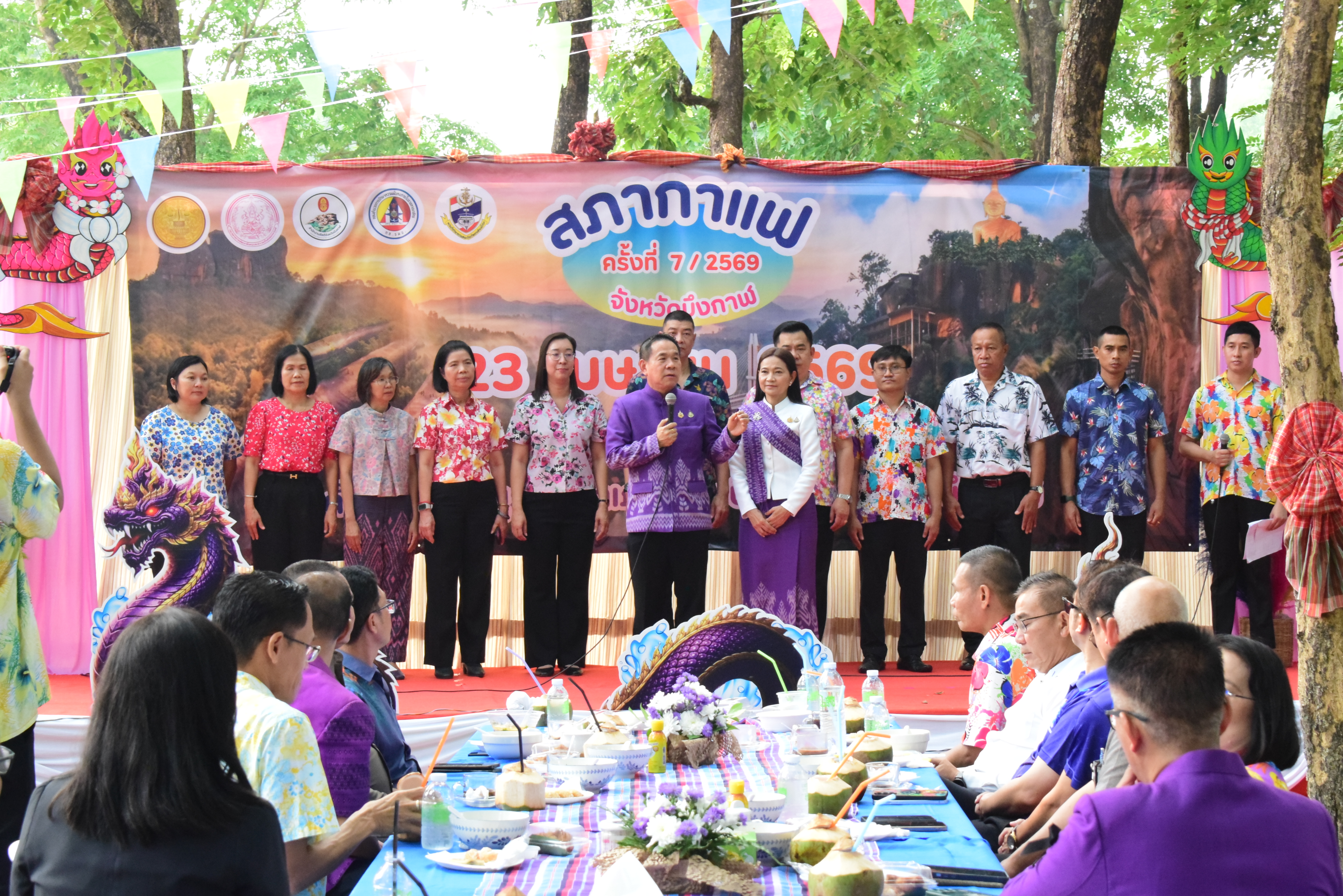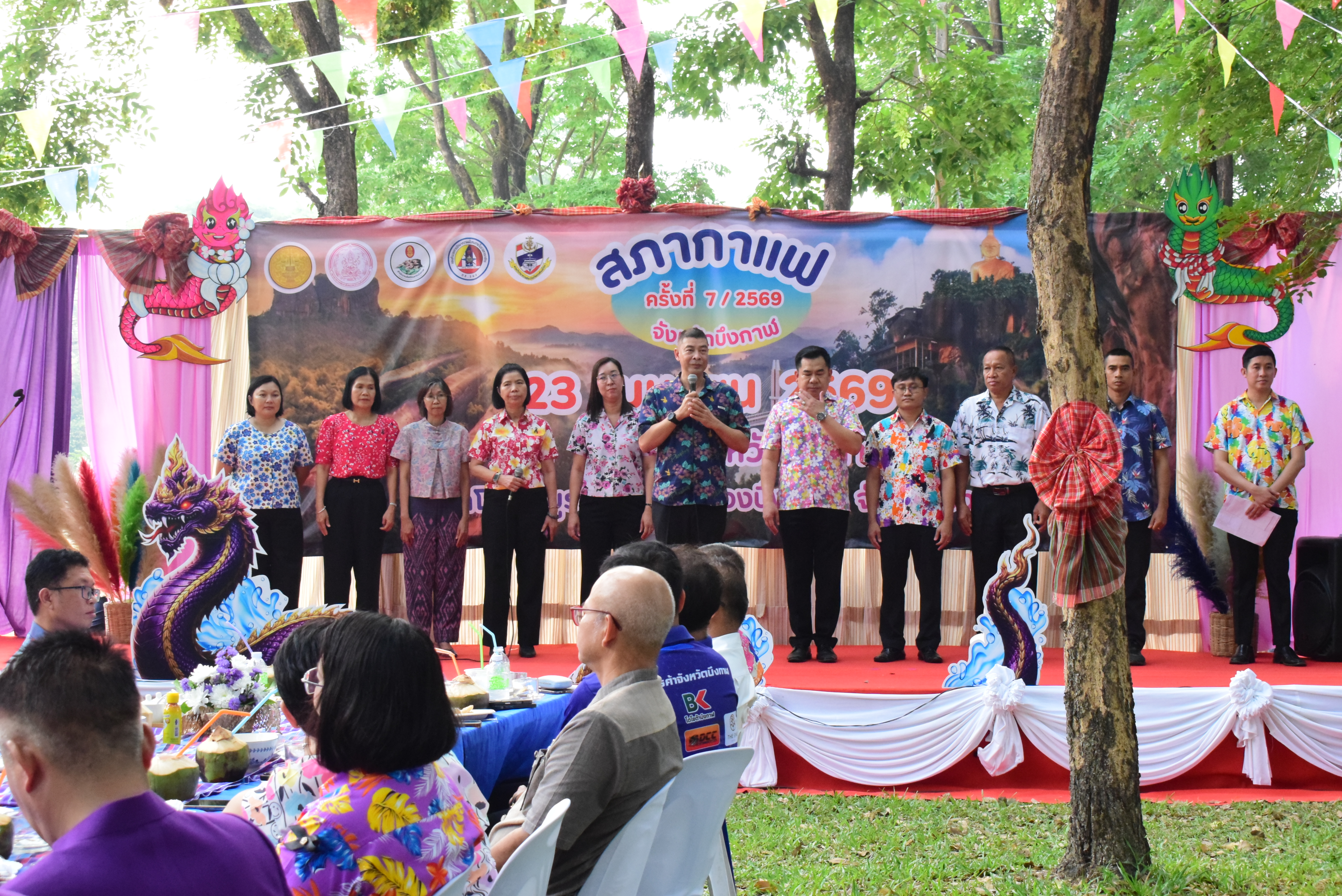 นางสาวสุภาภรณ์ วิไลเรืองสุวรรณ อุตสาหกรรมจังหวัดบึงกาฬ พร้อมด้วยเจ้าหน้าที่สำนักงานอุตสาหกรรมจังหวัดบึงกาฬ เข้าร่วมการประชุมสภากาแฟจังหวัดบึงกาฬ ประจำเดือนเมษายน พ.ศ. 2569 เพื่อเป็นการพบปะแลกเปลี่ยนความคิดเห็นและเสริมสร้างความร่วมมือระหว่างหน่วยงานภาครัฐ ภาคเอกชน และภาคประชาชนในพื้นที่ โดยมีวัตถุประสงค์เพื่อเสริมสร้างความสัมพันธ์อันดีระหว่างหน่วยงาน และขับเคลื่อนการดำเนินงานร่วมกันในการพัฒนาจังหวัดบึงกาฬ ณ ลานหน้าเรือนจำจังหวัดบึงกาฬ ตำบลโนนสมบูรณ์ อำเภอเมืองบึงกาฬ จังหวัดบึงกาฬ โดยมีนายสุรพล เจริญภูมิ ผู้ว่าราชการจังหวัดบึงกาฬ เป็นประธานการประชุมฯ